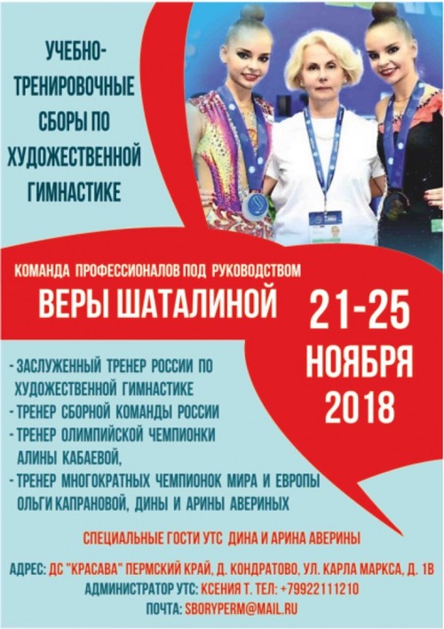 Приглашаем на учебно-тренировочный сбор по художественной гимнастике под руководством тренера сборной команды России Веры Николаевны Шаталиной, 21-25.11.2018, Пермский край, д. Кондратово